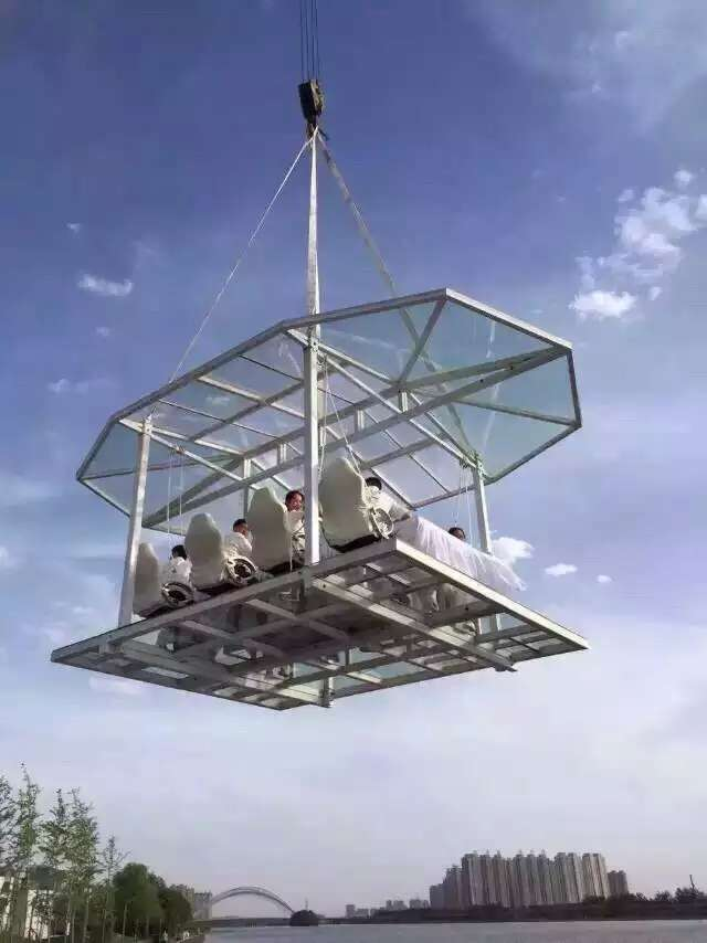 空中餐廳是能在高空就餐的餐廳。整個(gè)餐桌固定在金屬框架上,由一臺(tái)巨型起重機(jī)吊在30米左右高空。每次可接待8名顧客。除了享受美食之外,還可以俯瞰整個(gè)城市的美景。